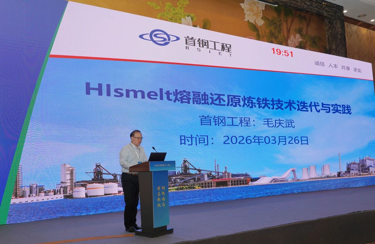 3月26日,由冶金工业信息标准研究院主办的“2026第三届南湖大会”在河北省唐山市隆重召开。首钢集团二级科学家、北京首钢国际工程技术有限公司(简称首钢工程)副总工程师毛庆武出席大会,并作《HIsmelt熔融还原炼铁技术迭代与实践》报告。毛庆