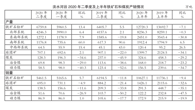 上半年,淡水河谷煤炭产量由2019年上半年的458万吨同比显著下降29.2%至325万吨。其中,冶金煤产量由2019年上半年的219万吨同比显著减少23.2%至168万吨;动力煤产量由2019年上半年的240万吨同比显著下滑34.7%至157万吨。